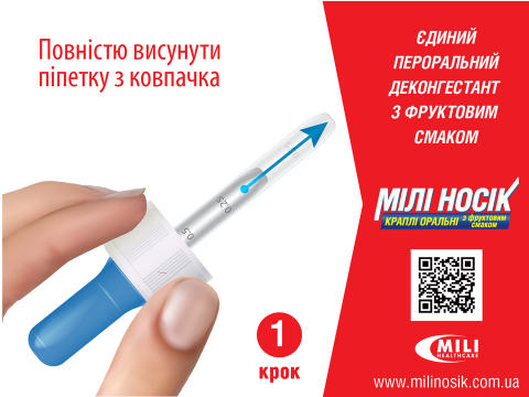 Реклама лікарського засобу. Перед застосуванням уважно ознайомтесь з інструкцією по застосуванню та проконсультуйтеся з лікарем. Зберігати у недоступному для дітей місці. Препарат відпускається в аптеках без рецепта лікаря. Тел.: + 38(044) 498-1334 e-mail: office@mili.net.ua